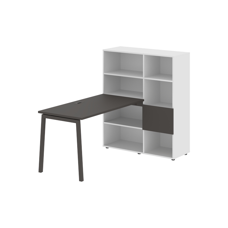 Каркасы стеллажей полностью из ЛДСП т.18 мм с кромками ПВХ т.2 и 0,45 мм, задняя стенка из ЛДСП. Комплектуется малой дверью в цвет столешницы и регулируемыми опорами h= 27 мм.