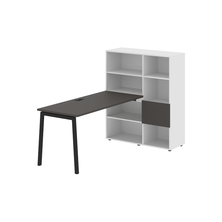 Столешница глубиной 670 мм, комплектуется регулируемой опорой L-образной формы из профиля трубы 40х40, комплектом телескопических траверс и двумя кронштейнами для крепления к стеллажу.