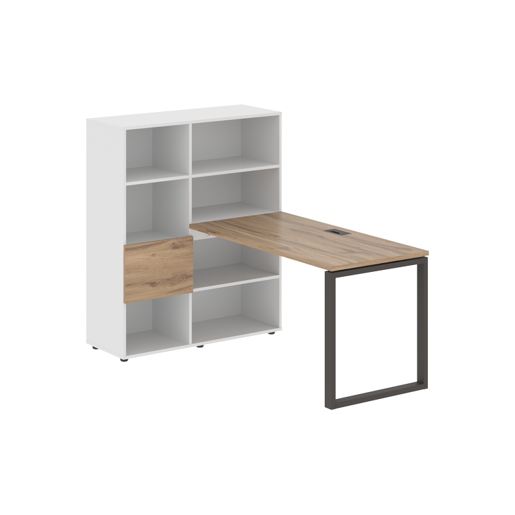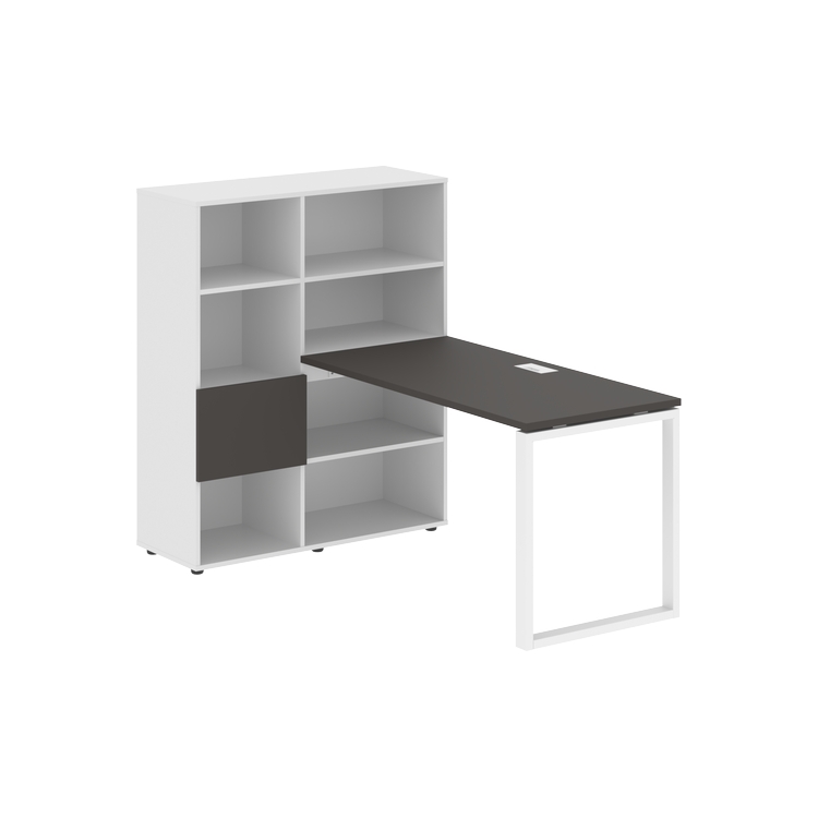 Каркасы стеллажей полностью из ЛДСП т.18 мм с кромками ПВХ т.2 и 0,45 мм, задняя стенка из ЛДСП. Комплектуется малой дверью в цвет столешницы и регулируемыми опорами h= 27 мм.