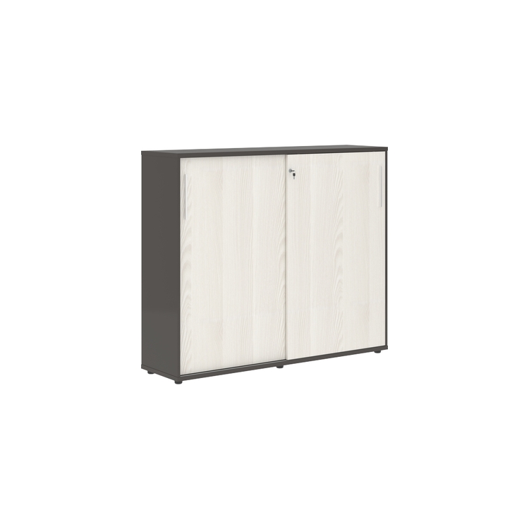 Шкаф комплектуется центральным замком для одновременного закрывания двух дверей, регулируемыми опорами h=27 мм и металлическими ручками.