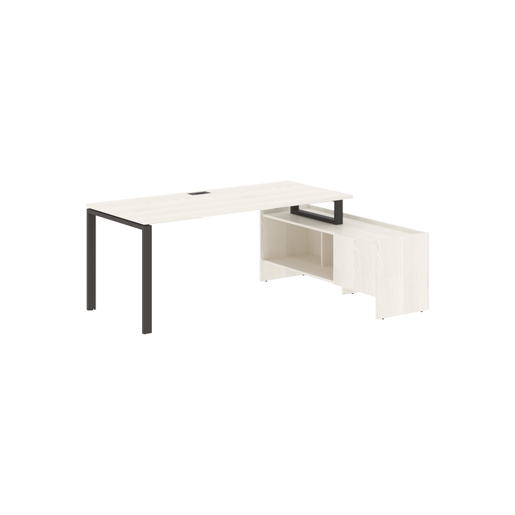 Столешница глубиной 800 мм из ЛДСП т.25 мм с кромками ПВХ по периметру т.2 мм. Комплектуется металлическим кабель-каналом габаритом 160х80х25 мм.