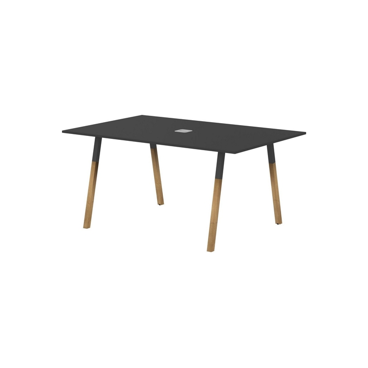 Столешница прямоугольная из ЛДСП т.18 мм. c кромкой ABS т.2 мм, комплектуется квадратной заглушкой кабель-канала в центре, 2-мя траверсами и комбинированными опорами А-образной формы, верхняя часть из трубы 40х40 мм и нижняя часть из массива бука; отделка – масло-воск.